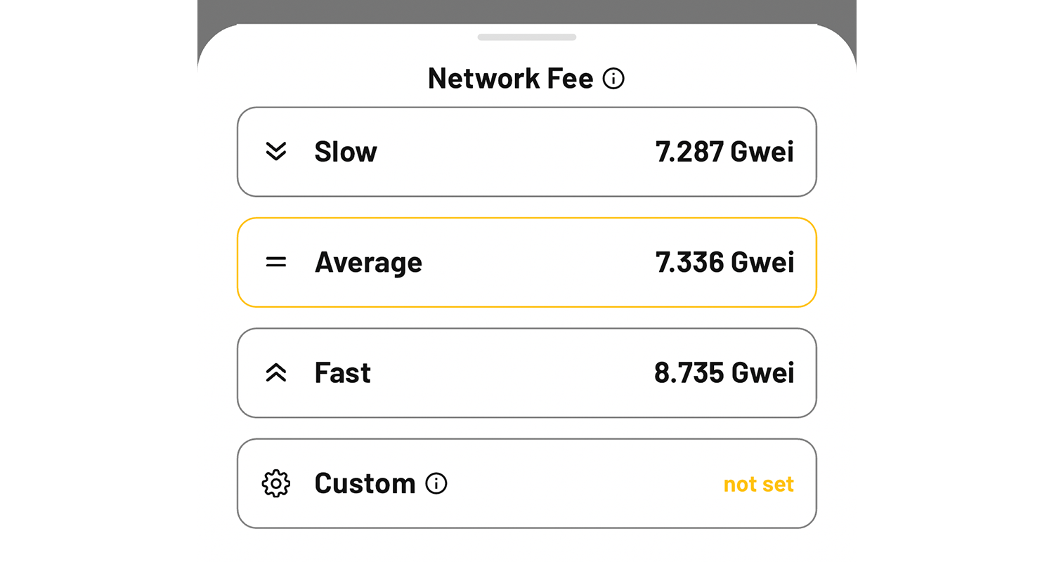 編輯網路費用適合進階用戶。在絕大多數情況下,保持網路費用為預設值,或選擇「普通」、「慢」或「快」之一就已經足夠。